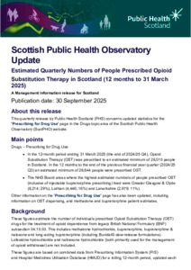 Public Health Scotland. (2025) Estimated numbers of people prescribed opioid substitution therapy in Scotland. Scottish Public Health Observatory: June and September update. Edinburgh: Public Health Scotland.