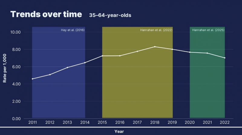 7 Hanrahan MT, Millar SR, Mongan D, Lyons S and Galvin B Prevalence of problematic opioid use in Ireland, 2020–2022. Dublin: Health Research Board, 2025. Available from: www.drugsandalcohol.ie/42700