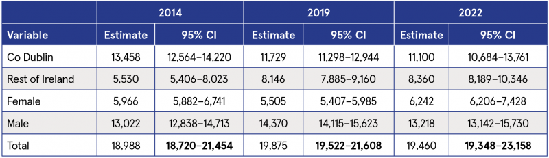 Table 3: Comparison of the estimated number of problematic opioid users in Ireland, 2014, 2019, and 2022
