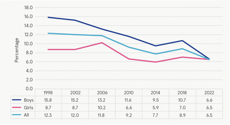 Source: HBSC Ireland (2022)Trends in cannabis use among Irish school-aged children, 1998–2022
