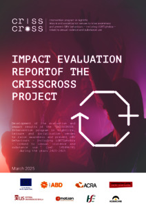 The CRISSCROSS project is an evidence-based initiative that addresses the intersectionality between gender-based violence, including sexual harassment and LGTBQIA+ hostility, and the risk associated with substance consumption (hereinafter the term “substance use” refers to the consumption of alcohol and drugs) in nightlife and social settings. Considering the characteristics of these contexts, in which structural inequalities are reflected and reproduced, allowing the normalisation of violence and the development of risk dynamics, this project seeks to transform these leisure spaces into safer and more inclusive venues, especially for people and social groups who are in a situation of vulnerability or added risk. Through the design of specific and sustainable interventions adapted to local needs, and using as a frame of reference the participatory approach of the Behaviour Change Wheel model - BCW - (Michie et al, 2011), the project wants to raise awareness among young people about attitudes supporting gender-based violence, including LGTBIQIA+ hostility, sexist beliefs that may support its emergence, and prevent sexually violent behaviour in situations of risk due to substance use.