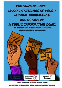 Humanising Healthcare. Dickson, Nic and Crawford, Lynsay and Williamson, Andrea E (2025) Pathways of hope - lived experience of drug + alcohol dependence, and recovery. A public information comic. Glasgow: University of Glasgow. doi: 10.36399/gla.pubs.361962.