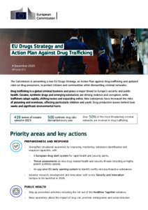 On 4 December, the Commission presented a new EU Drugs Strategy and an Action Plan against drug trafficking, as well as updated rules for monitoring and controlling drug precursors. Announced by President von der Leyen in the political guidelines and a key deliverable under the ProtectEU - European Internal Security Strategy, they set out a comprehensive EU response to the security, health, social and environmental challenges linked to the trafficking and use of illicit drugs.