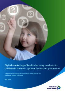 O’Connor, Louise and Reynolds, Ciara ME and McAvoy, Helen (2025) Digital marketing of health-harming products to children in Ireland – options for further protections. A report developed by the Institute of Public Health for the Online Health Taskforce. Dublin: Institute of Public Health.