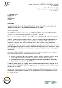 1130. Deputy Paul Murphy asked the Minister for Health if she will fund family liaison officers for mental health and addiction services; and if she will make a statement on the matter. [63728/25]