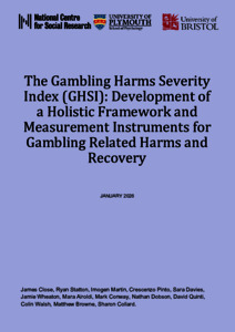 Close, James and Statton, Ryan and Martin, Imogen and Pinto, Crescenzo and Davies, Sara and Wheaton, Jamie and Airoldi, Mara and Conway, Mark and Dobson, Nathan and Quinti, David and Walsh, Colin and Browne, Matthew and Collard, Sharon (2026) The Gambling Harms Severity Index (GHSI): development of a holistic framework and measurement instruments for gambling related harms and recovery. London: National Centre for Social Research.