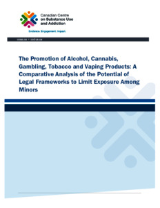 Gagnon, F (2025) The promotion of alcohol, cannabis, gambling, tobacco and vaping products: a comparative analysis of the potential of legal frameworks to limit exposure among minors. Ottawa: Canadian Centre on Substance Use and Addiction.