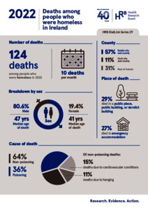 Riordan, Fiona and Gopalakrishnan, Arya and Kelleher, Cathy and Carew, Anne Marie (2026) Deaths among people who were homeless at time of death in Ireland, 2022. Dublin: Health Research Board.