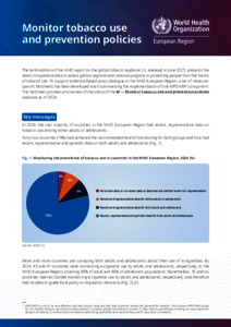 The tenth edition of the WHO report on the global tobacco epidemic (1), released in June 2025, presents the latest comparative data to assess global, regional and national progress in protecting people from the harms of tobacco use. To support evidence-based policy dialogue in the WHO European Region, a set of measure specific factsheets has been developed, each summarizing the implementation of one MPOWER1 component. This factsheet provides an overview of the status of the M — Monitor tobacco use and prevention policies measure as of 2024.