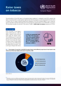 The tenth edition of the WHO report on the global tobacco epidemic (1), released in June 2025, presents the latest comparative data to assess global, regional and national progress in protecting people from the harms of tobacco use. To support evidence-based policy dialogue in the WHO European Region, a set of measurespecific factsheets has been developed, each summarizing the implementation of one MPOWER1 component. This factsheet provides an overview of the status of the R — Raise taxes on tobacco measure as of 2024.
