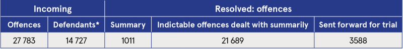 * There may be more than one offence brought against a defendant.