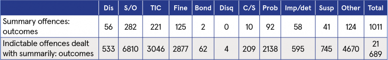 Table 2: Number of summary and indictable offences: outcomes in the District Court, 2024