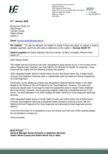I can also confirm that under Budget 2026, I have allocated funding to commence a Dual Diagnosis Day Programme at Keltoi in Dublin, as the first phase of a reopening of the Keltoi service.