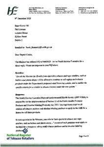 Minister for Health: Responsibility for the application and enforcement of the Public Health (Tobacco Products and Nicotine Inhaling Products) Act 2023 is a matter for the National Environmental Health Service. As this is a service matter, I have asked the Health Service Executive to respond directly to the Deputy as soon as possible.