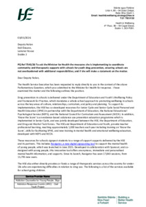 987. Deputy Carol Nolan asked the Minister for Health the measures she is implementing to coordinate community and therapeutic supports with schools for youth drug prevention, ensuring schools are not overburdened with additional responsibilities; and if she will make a statement on the matter. [7543/26]
